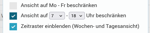 Unter Kalenderansicht – Planung in der Web-Amdinistration kann nun die Ansicht nach Uhrzeiten eingeteilt werden. Dies können Sie unter Planung – Kalenderansicht – Einstellungen (das kleine Rädchen ganz rechts) machen.